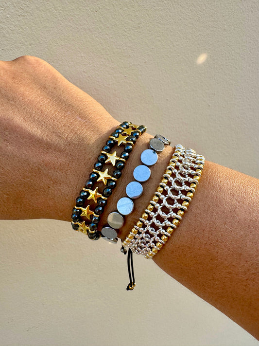 BRAID bracelet with gold and silver beads