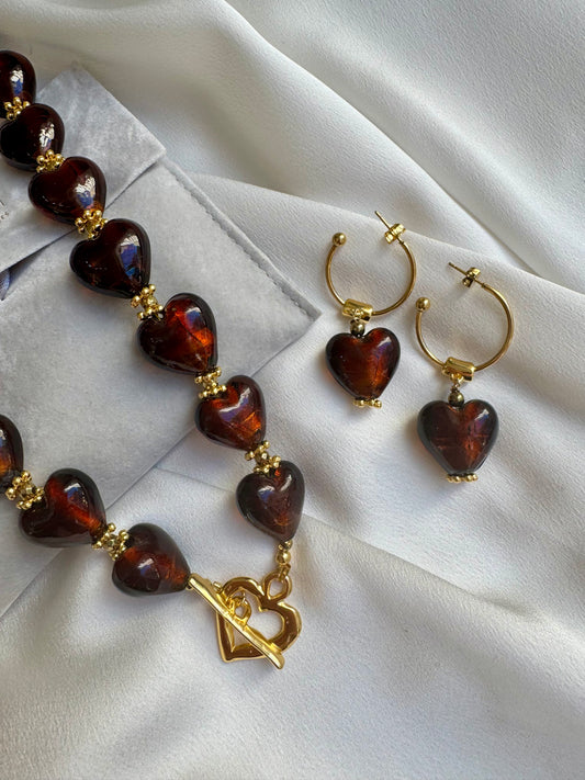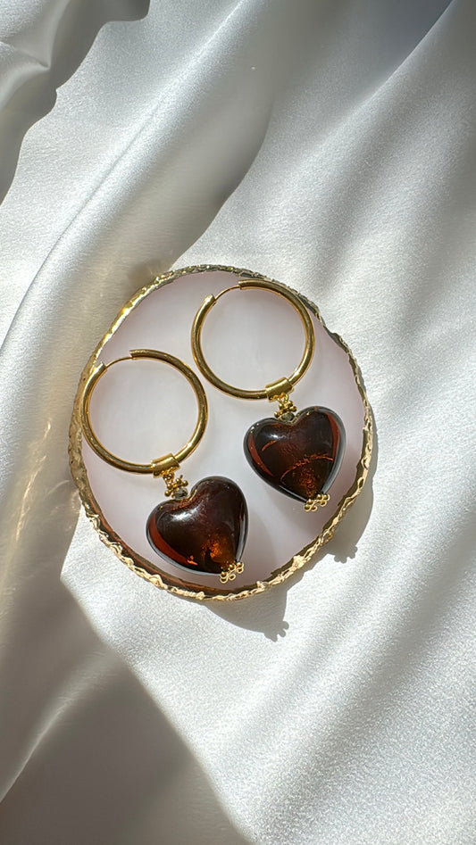 QUEEN OF HEARTS small stainless steel hoop earrings with Murano glass hearts