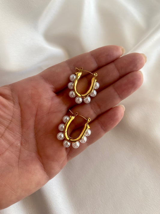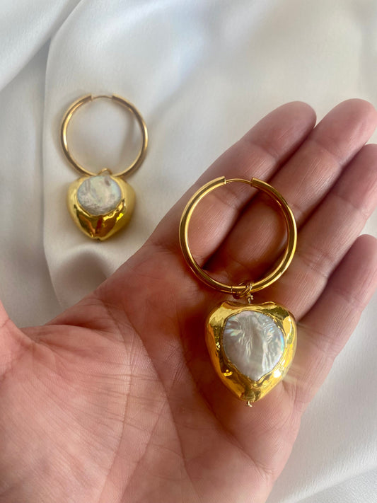 SNOW WHITE gold plated brass earrings with mother of pearls