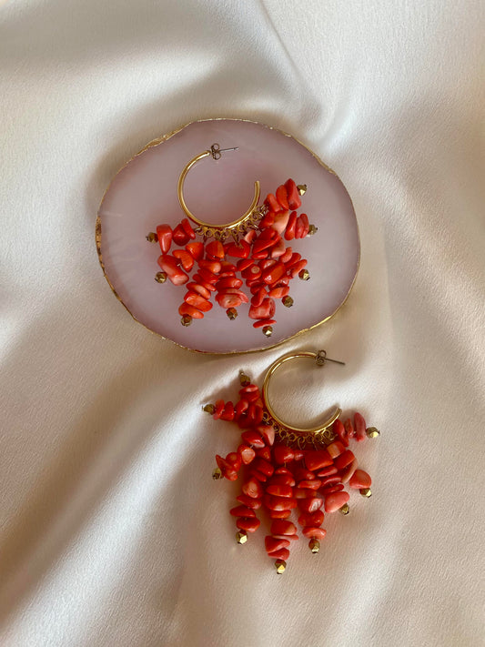 CORALINE stainless steel summer hoop earrings with coral beads