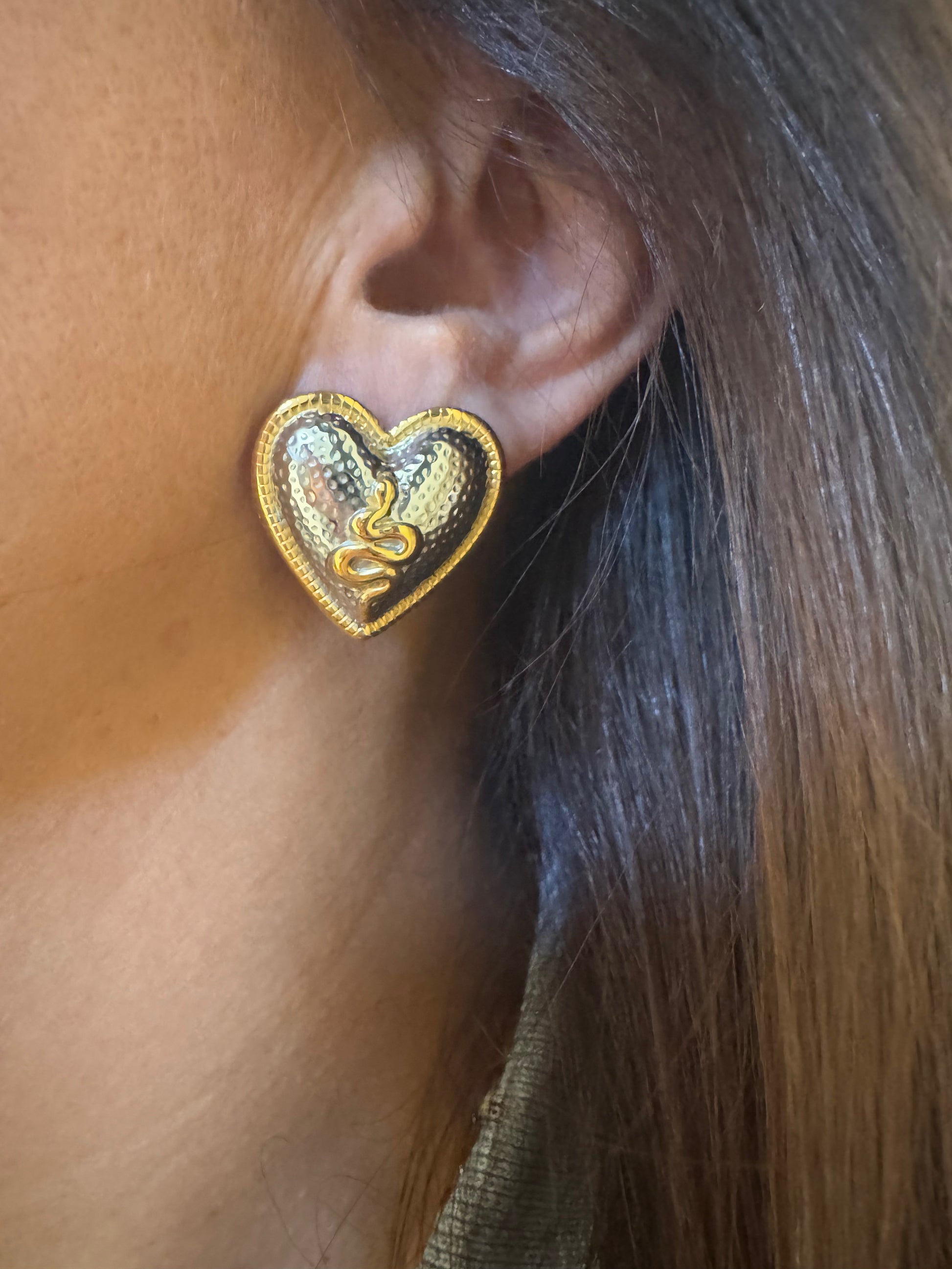 Take a look at our HEART earrings, in waterproof gold and silver plated stainless steel, featuring a snake and a convenient button closure. These earrings are very fresh and very easy to wear. They complement all colors and outfits effortlessly and can make a perfect gift idea.