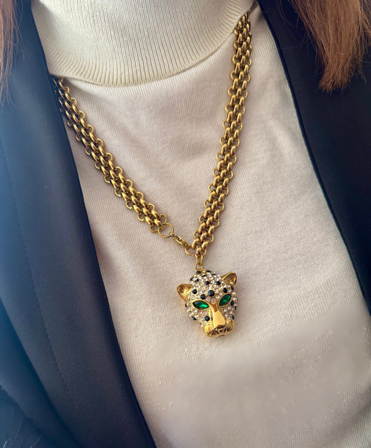 Made of stainless steel long chain and stainless steel charm with a lion head decorated with zircons, this necklace is definitely eye catching! It can stand alone but can also be worn with other necklaces for an even more impressive look! It's an exquisite and impressive gift suitable for any occasion.