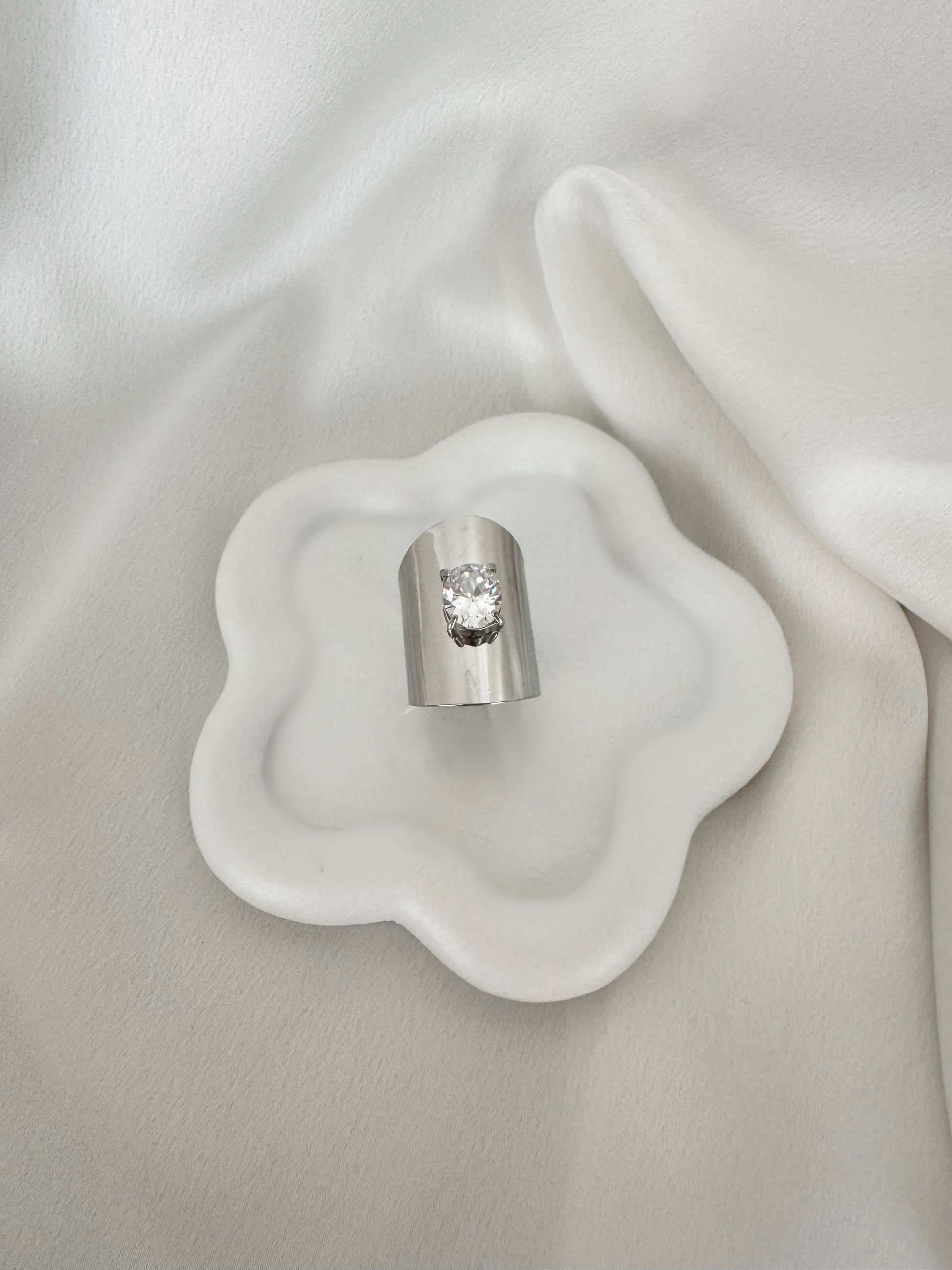 An elegant chunky ring, made of 18kt silver plated stainless steel with a zircon in the middle, it is an easy to wear all day long and all year round.