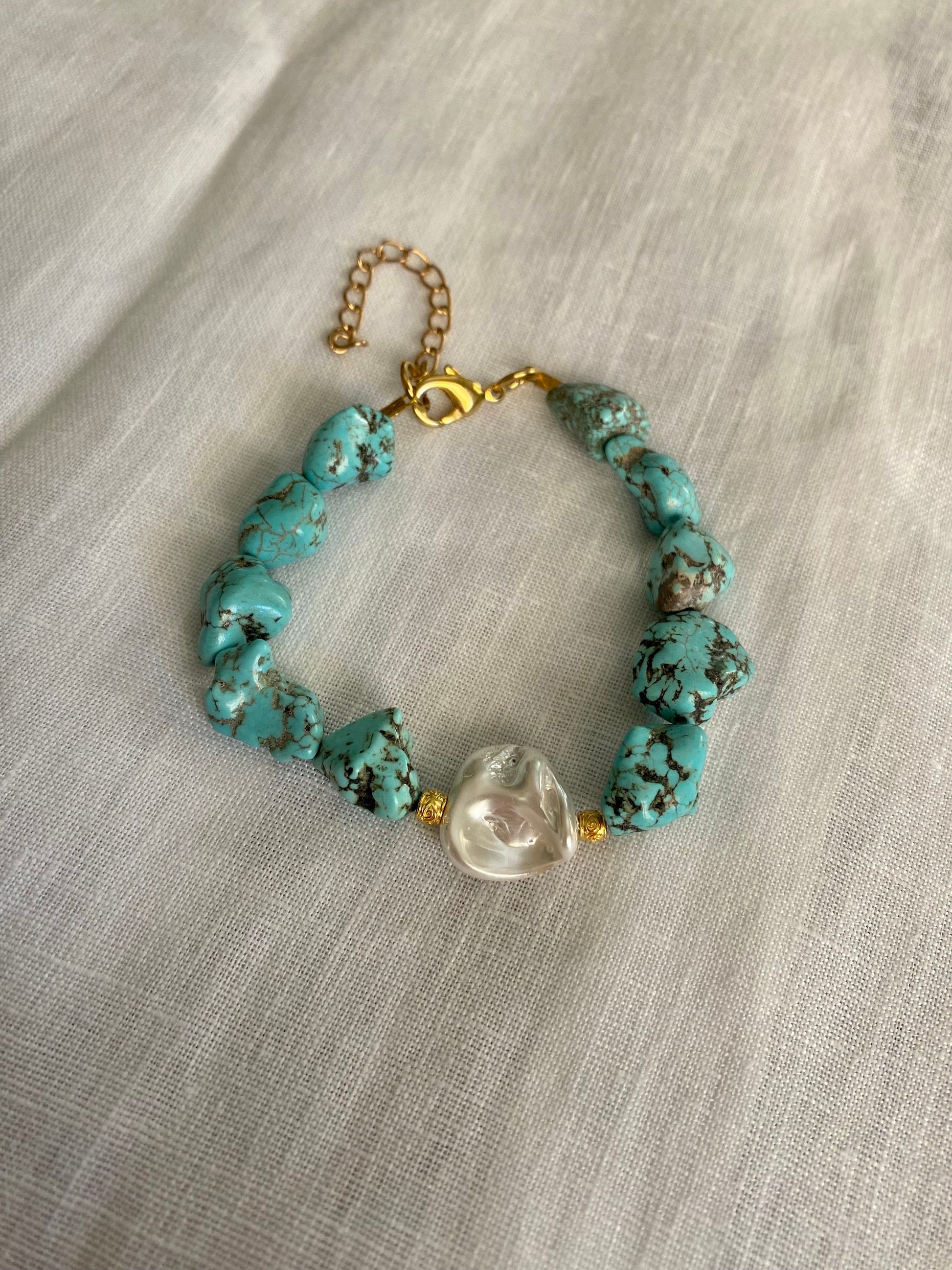 LIDIA turquoise bracelets with Mother of Pearl element and stainless steel charm